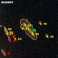 Black segments are analyzed here. Roll mouse over color images to view segments. Best viewed in a wide browser window (1200 pixels or more). Download SED & P(z) plots to view larger versions.