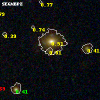 Black segments are analyzed here. Roll mouse over color images to view segments. Best viewed in a wide browser window (1200 pixels or more). Download SED & P(z) plots to view larger versions.