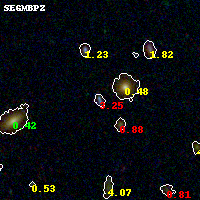Black segments are analyzed here. Roll mouse over color images to view segments. Best viewed in a wide browser window (1200 pixels or more). Download SED & P(z) plots to view larger versions.