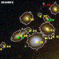 Black segments are analyzed here. Roll mouse over color images to view segments. Best viewed in a wide browser window (1200 pixels or more). Download SED & P(z) plots to view larger versions.