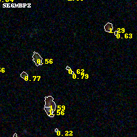 Black segments are analyzed here. Roll mouse over color images to view segments. Best viewed in a wide browser window (1200 pixels or more). Download SED & P(z) plots to view larger versions.