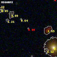 Black segments are analyzed here. Roll mouse over color images to view segments. Best viewed in a wide browser window (1200 pixels or more). Download SED & P(z) plots to view larger versions.