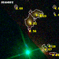 Black segments are analyzed here. Roll mouse over color images to view segments. Best viewed in a wide browser window (1200 pixels or more). Download SED & P(z) plots to view larger versions.
