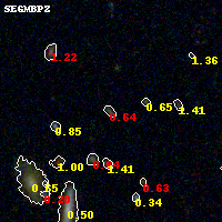 Black segments are analyzed here. Roll mouse over color images to view segments. Best viewed in a wide browser window (1200 pixels or more). Download SED & P(z) plots to view larger versions.