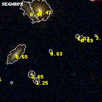 Black segments are analyzed here. Roll mouse over color images to view segments. Best viewed in a wide browser window (1200 pixels or more). Download SED & P(z) plots to view larger versions.