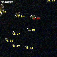 Black segments are analyzed here. Roll mouse over color images to view segments. Best viewed in a wide browser window (1200 pixels or more). Download SED & P(z) plots to view larger versions.