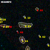 Black segments are analyzed here. Roll mouse over color images to view segments. Best viewed in a wide browser window (1200 pixels or more). Download SED & P(z) plots to view larger versions.