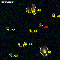 Black segments are analyzed here. Roll mouse over color images to view segments. Best viewed in a wide browser window (1200 pixels or more). Download SED & P(z) plots to view larger versions.