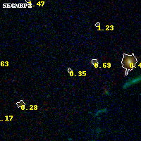 Object #1024 x,y = (3413, 1219) RA, Dec = (09:11:08.760, 17:45:39.60) = (137.78650, 17.76100) BPZ = 0.347 [0.160--5.563] type = 3.00 (Ell5_A_0) chisq2 = 0.71 ODDS = 0.09 z_cluster = 0.505