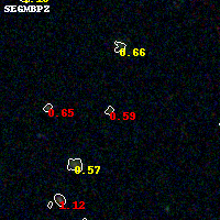 Object #153 x,y = (3301, 2921) RA, Dec = (09:11:09.240, 17:47:21.48) = (137.78850, 17.78930) BPZ = 0.588 [0.175--4.919] type = 7.50 (SB1_B10 - Scd_B10) chisq2 = 1.32 ODDS = 0.09 z_cluster = 0.505