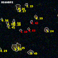 Object #205 x,y = (2211, 2806) RA, Dec = (09:11:13.824, 17:47:14.64) = (137.80760, 17.78740) BPZ = 0.654 [0.092--4.516] type = 8.20 (SB1_B10 - SB2_B10) chisq2 = 1.49 ODDS = 0.17 z_cluster = 0.505