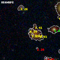 Object #21 x,y = (2557, 3464) RA, Dec = (09:11:12.360, 17:47:54.24) = (137.80150, 17.79840) BPZ = 0.389 [0.196--4.139] type = 3.00 (Ell5_A_0) chisq2 = 0.36 ODDS = 0.25 z_cluster = 0.505