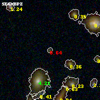Object #245 x,y = (2352, 2717) RA, Dec = (09:11:13.224, 17:47:09.24) = (137.80510, 17.78590) BPZ = 0.642 [0.393--4.017] type = 8.70 (SB2_B10 - SB1_B10) chisq2 = 1.23 ODDS = 0.24 z_cluster = 0.505