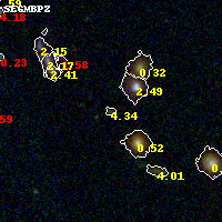 Object #251 x,y = (2981, 2715) RA, Dec = (09:11:10.584, 17:47:09.24) = (137.79410, 17.78590) BPZ = 4.337 [0.244--5.083] type = 8.50 (SB2_B10 - SB1_B10) chisq2 = 0.46 ODDS = 0.30 z_cluster = 0.505