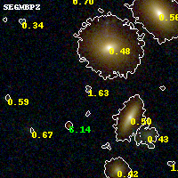 Object #266 x,y = (2609, 2687) RA, Dec = (09:11:12.144, 17:47:07.44) = (137.80060, 17.78540) BPZ = 1.628 [0.165--3.349] type = 10.00 (SB3_B10) chisq2 = 0.69 ODDS = 0.19 z_cluster = 0.505