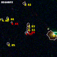Object #446 x,y = (3888, 2383) RA, Dec = (09:11:06.768, 17:46:49.44) = (137.77820, 17.78040) BPZ = 2.112 [1.748--3.410] type = 7.10 (Scd_B10 - SB1_B10) chisq2 = 0.07 ODDS = 0.41 z_cluster = 0.505