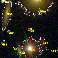 Object #455 x,y = (3593, 2387) RA, Dec = (09:11:08.016, 17:46:49.44) = (137.78340, 17.78040) BPZ = 1.017 [0.074--3.633] type = 9.20 (SB2_B10 - SB3_B10) chisq2 = 0.17 ODDS = 0.18 z_cluster = 0.505