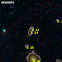 Object #5 x,y = (2653, 3628) RA, Dec = (09:11:11.952, 17:48:03.96) = (137.79980, 17.80110) BPZ = 1.237 [1.129--1.402] type = 8.50 (SB2_B10 - SB1_B10) chisq2 = 0.28 ODDS = 0.81 z_cluster = 0.505