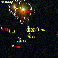 Object #508 x,y = (2130, 2312) RA, Dec = (09:11:14.160, 17:46:45.12) = (137.80900, 17.77920) BPZ = 0.575 [0.151--3.990] type = 10.50 (SB11_A_0_l - SB3_B10) chisq2 = 0.24 ODDS = 0.17 z_cluster = 0.505