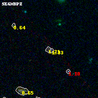 Object #65 x,y = (3199, 3219) RA, Dec = (09:11:09.672, 17:47:39.48) = (137.79030, 17.79430) BPZ = 1.211 [0.077--3.236] type = 9.70 (SB3_B10 - SB2_B10) chisq2 = 0.28 ODDS = 0.32 z_cluster = 0.505