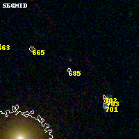 Object #685 x,y = (4255, 2016) RA, Dec = (09:11:05.232, 17:46:27.12) = (137.77180, 17.77420) BPZ = 4.346 [0.600--4.790] type = 10.00 (SB3_B10) chisq2 = 0.08 ODDS = 0.56 z_cluster = 0.505