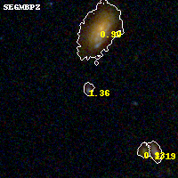 Object #686 x,y = (1945, 2009) RA, Dec = (09:11:14.928, 17:46:26.76) = (137.81220, 17.77410) BPZ = 1.363 [1.202--1.573] type = 9.80 (SB3_B10 - SB2_B10) chisq2 = 0.41 ODDS = 0.75 z_cluster = 0.505