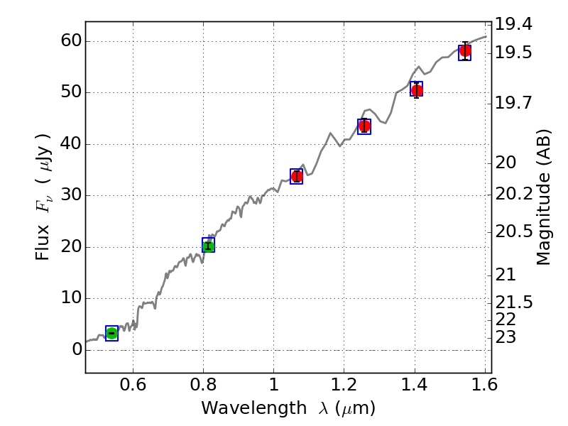Object #77 x,y = (2617, 3146) RA, Dec = (09:11:12.120, 17:47:35.16) = (137.80050, 17.79310) BPZ = 0.539 [0.470--0.634] type = 2.20 (Ell6_A_0 - Ell5_A_0) chisq2 = 0.01 ODDS = 0.82 z_cluster = 0.505