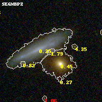 Object #858 x,y = (2190, 1821) RA, Dec = (09:11:13.920, 17:46:15.60) = (137.80800, 17.77100) BPZ = 1.786 [1.679--1.978] type = 8.90 (SB2_B10 - SB1_B10) chisq2 = 0.29 ODDS = 0.85 z_cluster = 0.505
