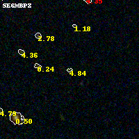 Object #920 x,y = (2854, 1528) RA, Dec = (09:11:11.112, 17:45:57.96) = (137.79630, 17.76610) BPZ = 4.843 [4.541--5.139] type = 10.60 (SB11_A_0_l - SB3_B10) chisq2 = 0.75 ODDS = 0.88 z_cluster = 0.505