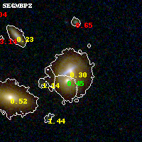 Object #958 x,y = (3212, 1439) RA, Dec = (09:11:09.624, 17:45:52.56) = (137.79010, 17.76460) BPZ = 0.298 [0.274--0.864] type = 5.10 (ES0_B10 - Sbc_B10) chisq2 = 0.03 ODDS = 0.53 z_cluster = 0.505