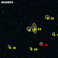 Object #962 x,y = (2933, 1403) RA, Dec = (09:11:10.776, 17:45:50.40) = (137.79490, 17.76400) BPZ = 0.192 [0.094--3.591] type = 4.00 (Ell4_A_0) chisq2 = 0.38 ODDS = 0.15 z_cluster = 0.505