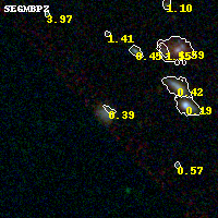 Object #984 x,y = (2148, 1344) RA, Dec = (09:11:14.088, 17:45:46.80) = (137.80870, 17.76300) BPZ = 0.391 [0.091--3.542] type = 8.90 (SB2_B10 - SB1_B10) chisq2 = 0.25 ODDS = 0.13 z_cluster = 0.505