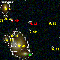 Object #994 x,y = (2801, 1315) RA, Dec = (09:11:11.352, 17:45:45.36) = (137.79730, 17.76260) BPZ = 0.687 [0.149--5.249] type = 8.90 (SB2_B10 - SB1_B10) chisq2 = 0.41 ODDS = 0.10 z_cluster = 0.505