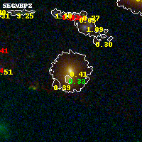 Object #1009 x,y = (2546, 1445) RA, Dec = (09:49:50.904, 17:06:11.88) = (147.46210, 17.10330) BPZ = 0.415 [0.336--0.454] type = 3.00 (Ell5_A_0) chisq2 = 0.05 ODDS = 0.93 z_cluster = 0.383