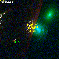 Object #1034 x,y = (3498, 1375) RA, Dec = (09:49:46.920, 17:06:07.92) = (147.44550, 17.10220) BPZ = 3.299 [0.188--3.679] type = 7.10 (Scd_B10 - SB1_B10) chisq2 = 0.56 ODDS = 0.58 z_cluster = 0.383