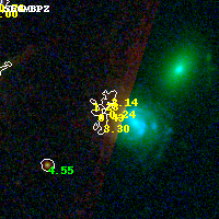 Object #1035 x,y = (3503, 1388) RA, Dec = (09:49:46.896, 17:06:08.64) = (147.44540, 17.10240) BPZ = 0.243 [0.094--3.878] type = 6.30 (Sbc_B10 - Scd_B10) chisq2 = 0.30 ODDS = 0.18 z_cluster = 0.383