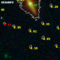 Object #1036 x,y = (2784, 1400) RA, Dec = (09:49:49.920, 17:06:09.36) = (147.45800, 17.10260) BPZ = 0.815 [0.105--4.339] type = 8.90 (SB2_B10 - SB1_B10) chisq2 = 0.89 ODDS = 0.16 z_cluster = 0.383