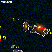 Object #106 x,y = (3423, 3254) RA, Dec = (09:49:47.232, 17:08:00.60) = (147.44680, 17.13350) BPZ = 0.314 [0.239--0.357] type = 3.10 (Ell5_A_0 - Ell4_A_0) chisq2 = 0.05 ODDS = 0.89 z_cluster = 0.383