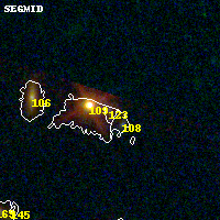 Object #123 x,y = (3493, 3243) RA, Dec = (09:49:46.944, 17:07:59.88) = (147.44560, 17.13330) BPZ = 1.304 [1.181--1.556] type = 7.80 (SB1_B10 - Scd_B10) chisq2 = 0.08 ODDS = 0.71 z_cluster = 0.383