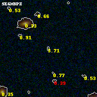 Object #131 x,y = (2472, 3204) RA, Dec = (09:49:51.216, 17:07:57.72) = (147.46340, 17.13270) BPZ = 3.711 [3.444--4.012] type = 11.00 (SB11_A_0_l) chisq2 = 0.96 ODDS = 0.81 z_cluster = 0.383