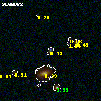 Object #181 x,y = (1912, 3090) RA, Dec = (09:49:53.568, 17:07:50.88) = (147.47320, 17.13080) BPZ = 0.119 [0.085--0.857] type = 9.30 (SB2_B10 - SB3_B10) chisq2 = 0.45 ODDS = 0.27 z_cluster = 0.383