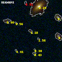 Object #202 x,y = (2810, 3035) RA, Dec = (09:49:49.800, 17:07:47.28) = (147.45750, 17.12980) BPZ = 1.099 [0.036--1.259] type = 9.20 (SB2_B10 - SB3_B10) chisq2 = 0.52 ODDS = 0.41 z_cluster = 0.383