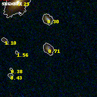 Object #204 x,y = (2900, 3018) RA, Dec = (09:49:49.416, 17:07:46.56) = (147.45590, 17.12960) BPZ = 0.711 [0.636--0.819] type = 8.60 (SB2_B10 - SB1_B10) chisq2 = 0.02 ODDS = 0.85 z_cluster = 0.383