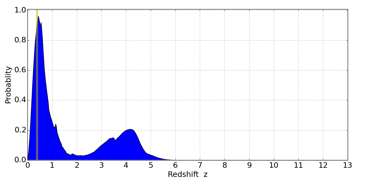 Best viewed in a wide browser window (1200 pixels or more). Download SED & P(z) plots to view larger versions.