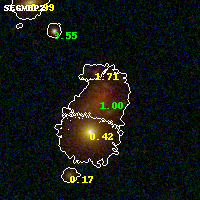 Object #225 x,y = (1970, 2947) RA, Dec = (09:49:53.328, 17:07:42.24) = (147.47220, 17.12840) BPZ = 0.999 [0.940--1.066] type = 6.30 (Sbc_B10 - Scd_B10) chisq2 = 0.01 ODDS = 0.98 z_cluster = 0.383