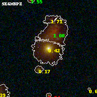 Object #226 x,y = (1960, 2916) RA, Dec = (09:49:53.352, 17:07:40.08) = (147.47230, 17.12780) BPZ = 0.421 [0.351--0.468] type = 2.60 (Ell5_A_0 - Ell6_A_0) chisq2 = 0.02 ODDS = 0.93 z_cluster = 0.383