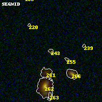Object #243 x,y = (1705, 2951) RA, Dec = (09:49:54.432, 17:07:42.24) = (147.47680, 17.12840) BPZ = 0.617 [0.089--4.071] type = 8.40 (SB1_B10 - SB2_B10) chisq2 = 0.16 ODDS = 0.18 z_cluster = 0.383