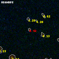 Object #278 x,y = (3371, 2893) RA, Dec = (09:49:47.448, 17:07:39.00) = (147.44770, 17.12750) BPZ = 0.424 [0.162--4.043] type = 9.40 (SB2_B10 - SB3_B10) chisq2 = 1.26 ODDS = 0.18 z_cluster = 0.383