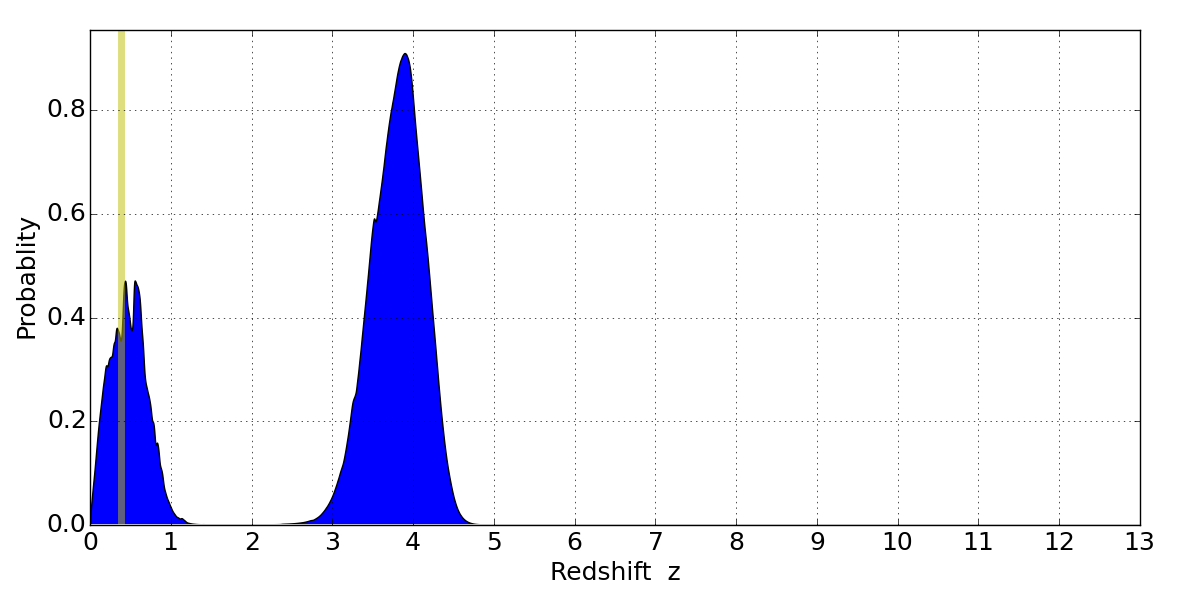 Best viewed in a wide browser window (1200 pixels or more). Download SED & P(z) plots to view larger versions.