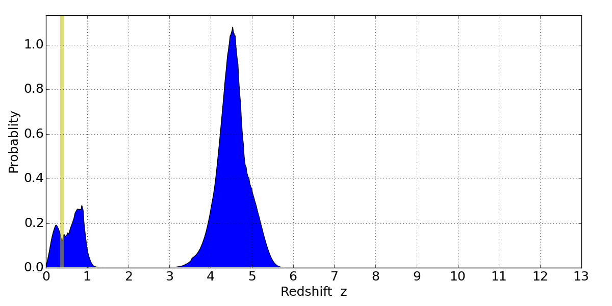 Best viewed in a wide browser window (1200 pixels or more). Download SED & P(z) plots to view larger versions.